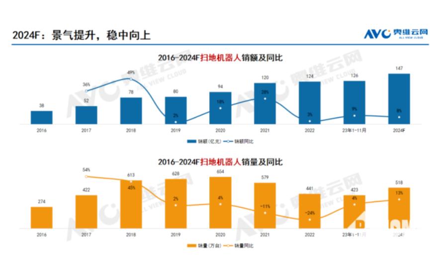石头科技则是统计的销售额,在石头科技 2024 全球发布会上,其高调宣布:“石头科技扫地机器人在2023年的销额已经实现全球第一”。事实上从另外几家头部扫地机器人品牌的财报来看也的确如此。