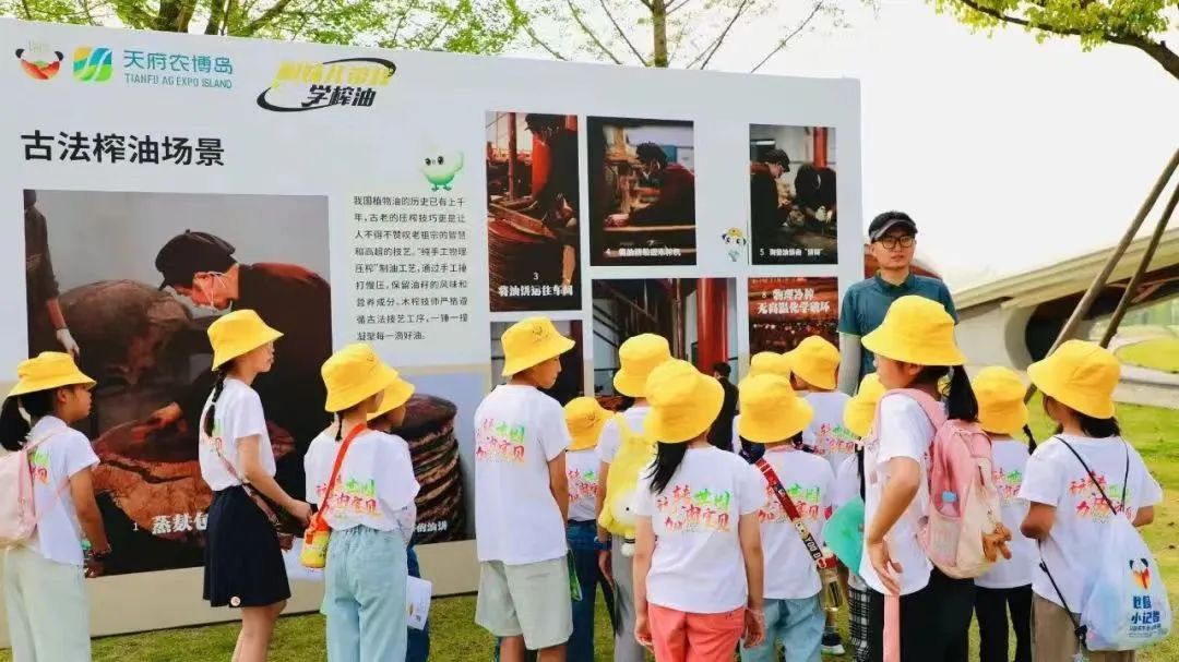 “五一”假期,来天府农博岛,跟随桐妹儿一起追寻菜籽油的奥秘吧!你可以在“非遗木榨研学”中亲身体验千年古法制油工艺,在“蒸锅包饼”“装饼上榨”“铁杵冲榨”等精湛工序中,感受劳动的乐趣与工匠精神的魅力。