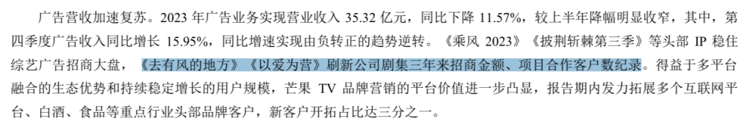 《去有风的地方》《以爱为营》剧集招商破纪录刚被写进芒果超媒财报,《与凤行》又以开播时7个广告的近乎满格状态,让芒果剧集招商再进一步。