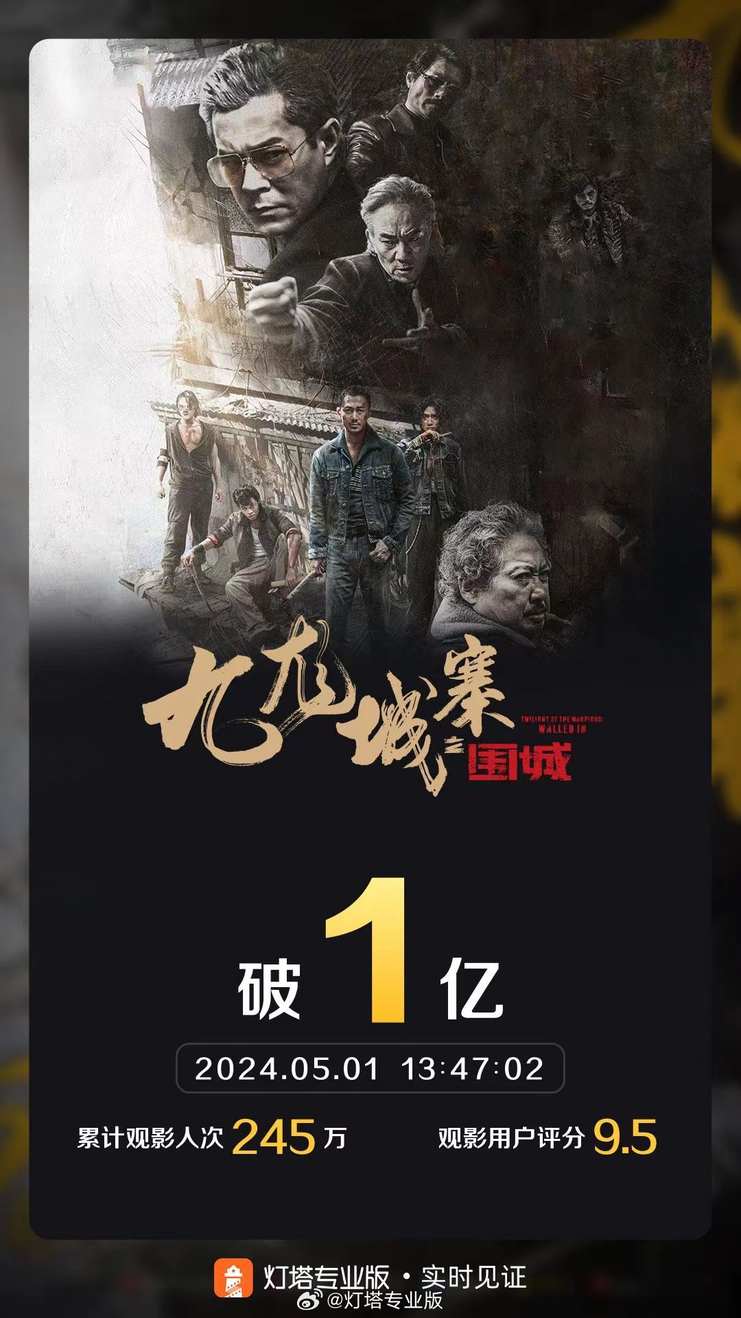 据灯塔专业版实时数据,截至5月1日13时47分,影片《九龙城寨之围城》票房突破1亿。
