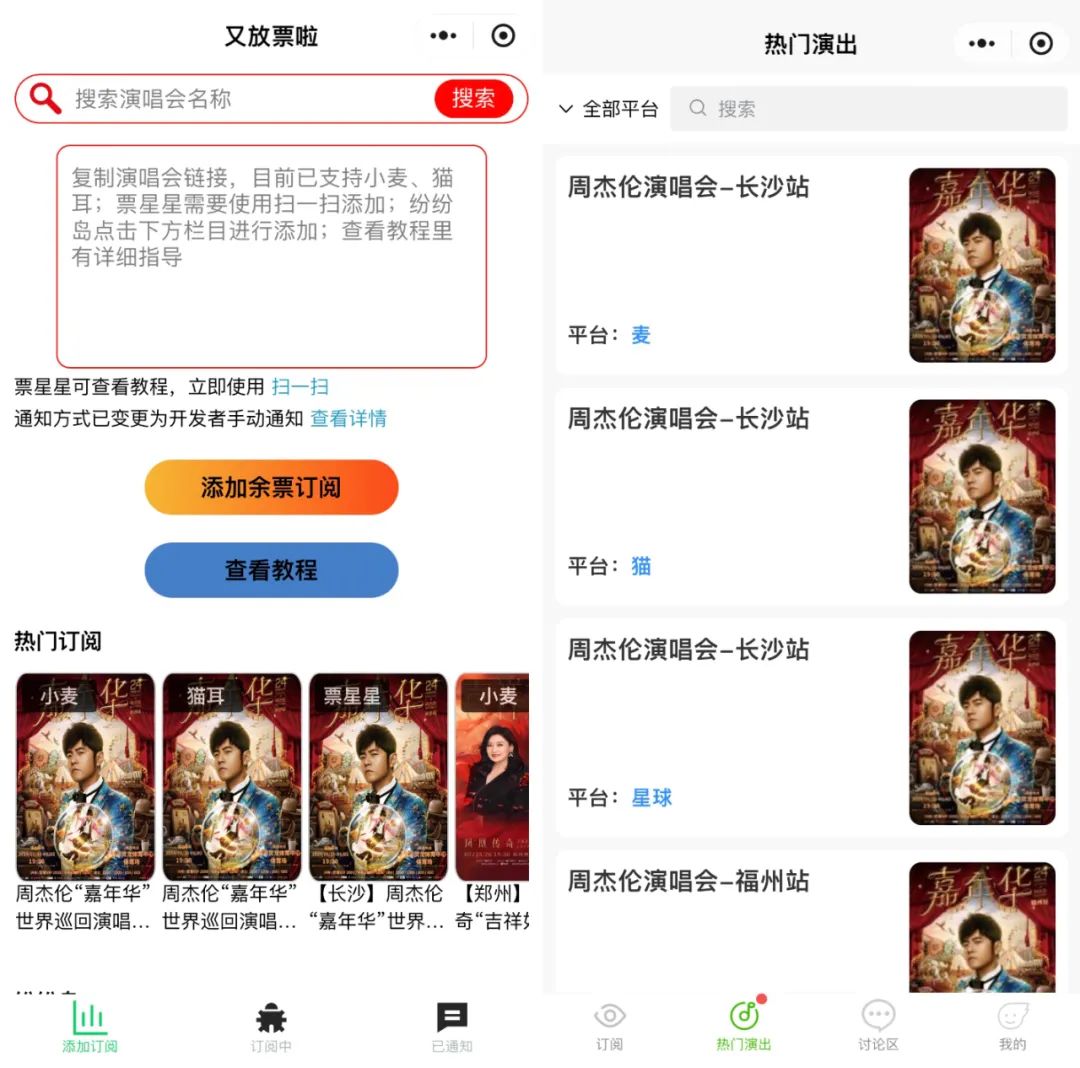 此外,越来越多第三方软件也在搅动着市场。例如前文提到,又放票啦、演出余票等监测小程序。