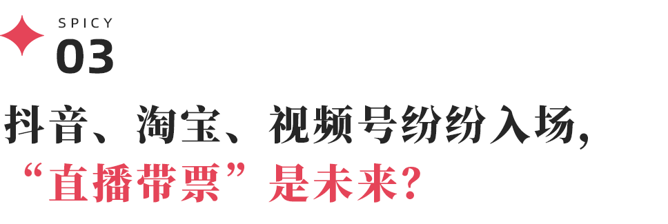 实际上,独立的票务平台抖音、淘宝、视频号等平台,也成为新的内容宣传+购票渠道,一个又一个全新的票务平台正在兴起。