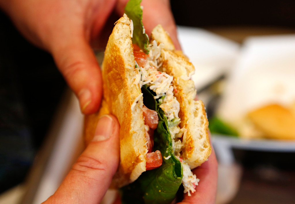 雪蟹肉被切碎,和芹菜丁、蛋黄酱混合,加上生菜叶和番茄,和烤面包一起组成了这款售价8.99美元的蟹肉三明治。麦当劳表示,这款三明治是由顶级厨师Ryan Scott帮助研发的。