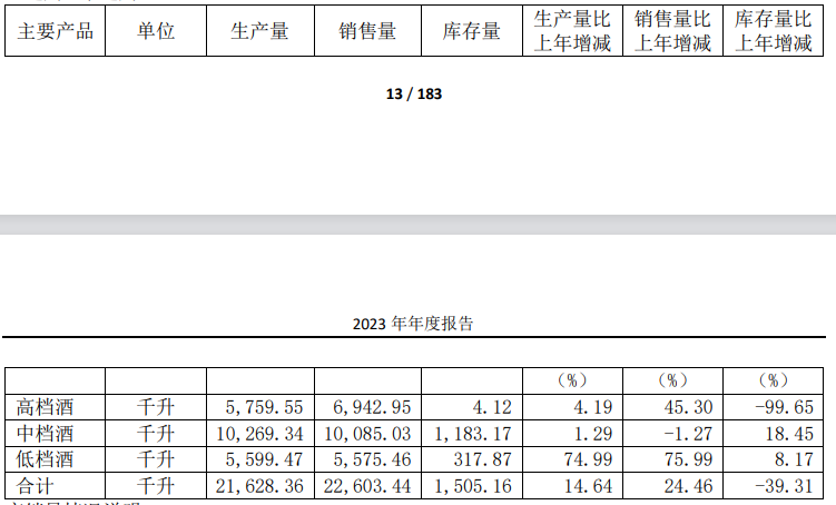 从结果来看,高档酒的库存量仅为4.12千升,与去年同期相比大幅降低99.65%。