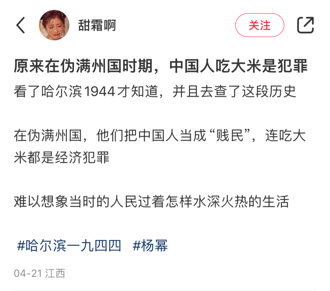 《哈尔滨一九四四》采用的不是线性的史诗模式,而是聚焦在特定的某时某地某些事件。但通过官方的闪回讲述、台词与细节暗示,或者演员演绎出的蛛丝马迹、遐想空间,观众会去关注这些人物的前半生,将他们与历史课本对照,好奇是哪些事件促使他们走到今时今日。
