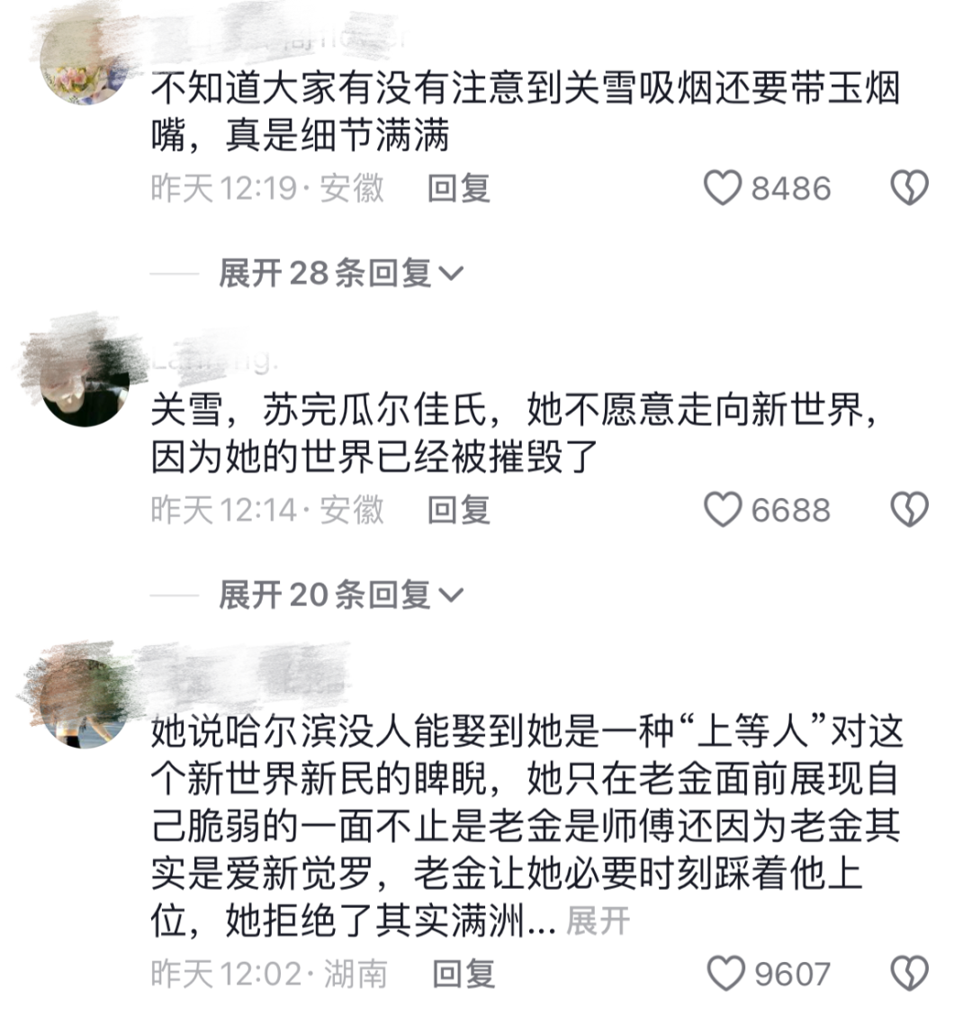 最能体现这一点的无疑还是关雪。她是没落的满清贵族,曾和宋家两兄弟一起辗转在逃难的路上,后来去日本接受特务训练,如今带着与下属截然不同的恨意与驱动力为伪满效力。她身上的所有问题,都能在上下百年的近代史中找到答案。