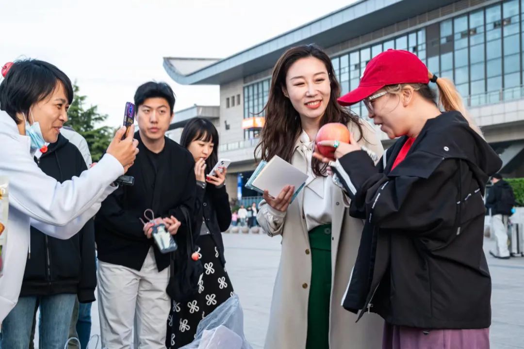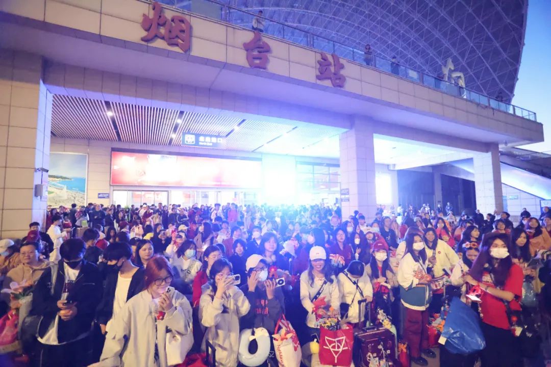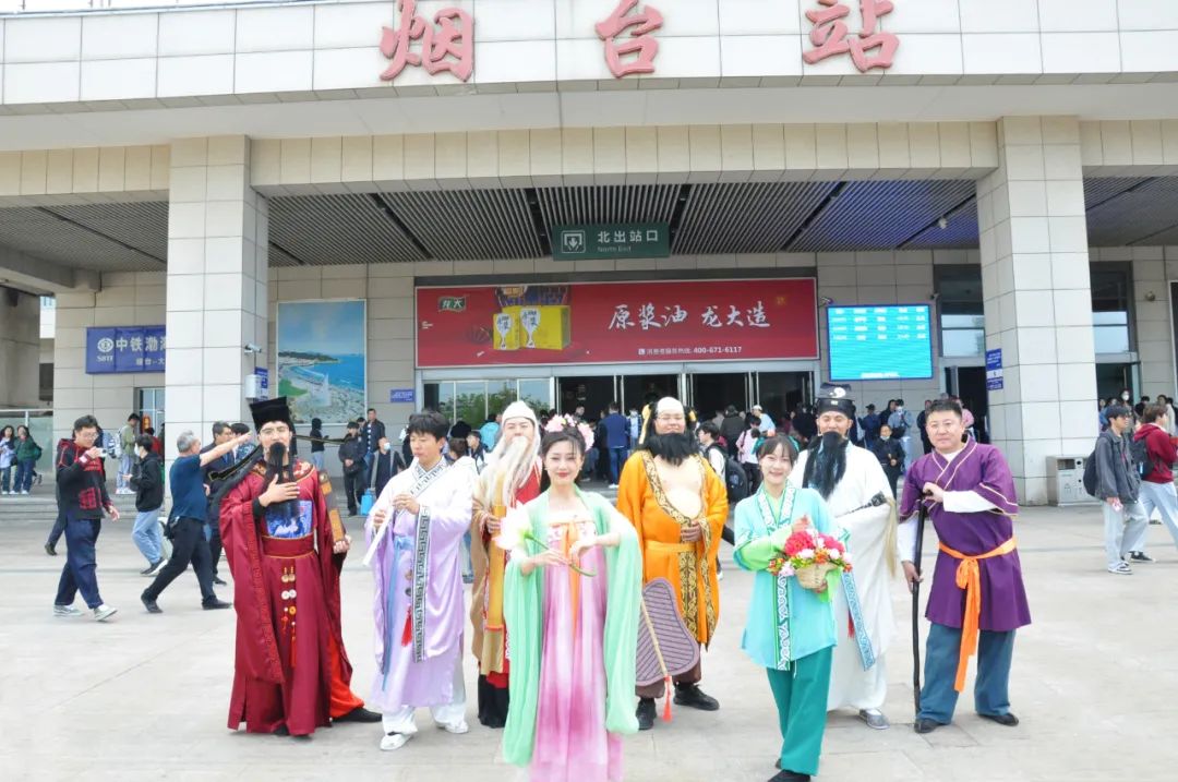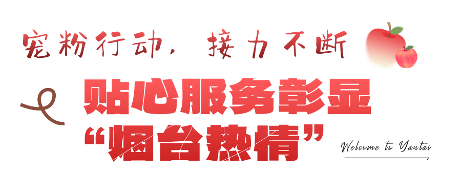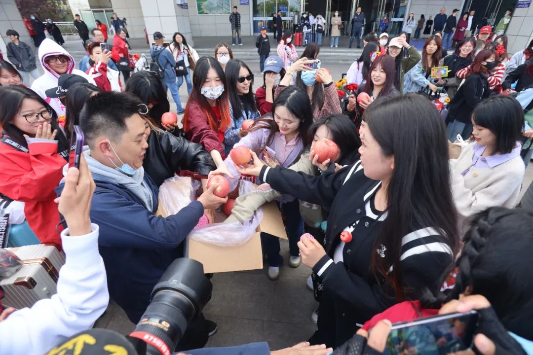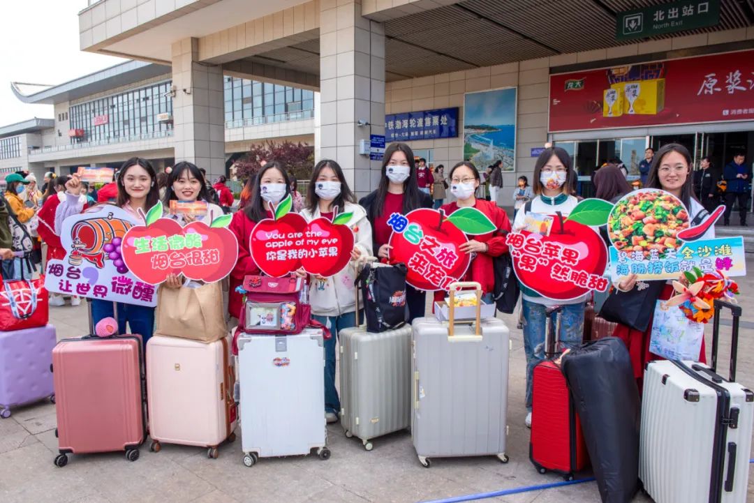 为欢迎全国各地的朋友,4月30日,“你是我的小苹果”烟台文旅宠粉行动拉开帷幕,由文旅部门、高校志愿者、摄影达人、新媒体创作者、媒体记者组成的欢迎团,走进烟台火车站及各大网红打卡点,为游客送上烟台苹果及文创产品,现场更有“八仙”助阵,带来精彩的歌舞表演。用鲜美的物产好礼馈赠五湖朋友,用百分百的热情迎接八方来客,书写了一场穿越山海双向奔赴的故事序章。