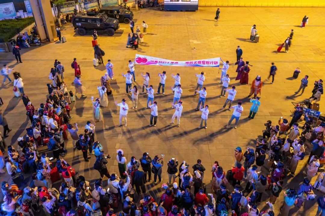 除了车站迎宾,为游客送上欢快热情且颇具氛围感的接站仪式之外,一些文创品牌、热心企业也纷纷加入宠游客行动,掀起“宠粉”热潮。