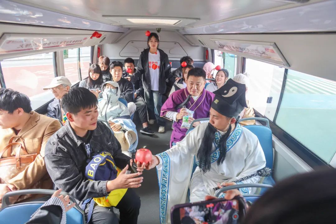 仙境城市,怎少得了“神仙”。为给游客提供更多惊喜,蓬莱阁景区的“八仙真人秀”也来到了火车站,与游客开启一场浪漫邂逅,在互动交流的同时,为游客送上“仙境通关文牒”,让趣味的“集章手册”文创产品,打开游客幸福的仙境时光。