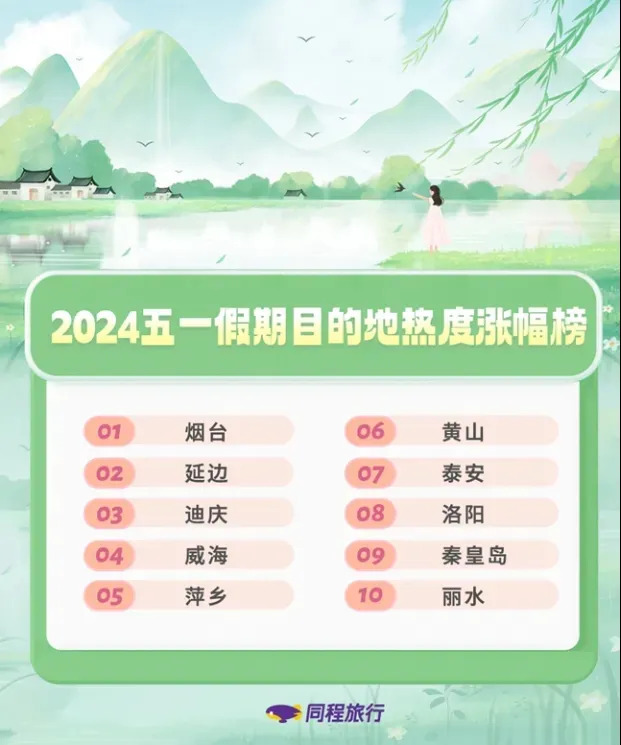 日前,同程旅行发布《2024“五一”假期旅行趋势报告》,烟台与洛阳、黄山等城市入选“五一假期目的地热度涨幅榜”TOP10,烟台名列第一。携程数据显示,烟台入选“全国旅游黑马城市TOP10”。烟台成为小红书用户“年度喜爱目的地”之一。