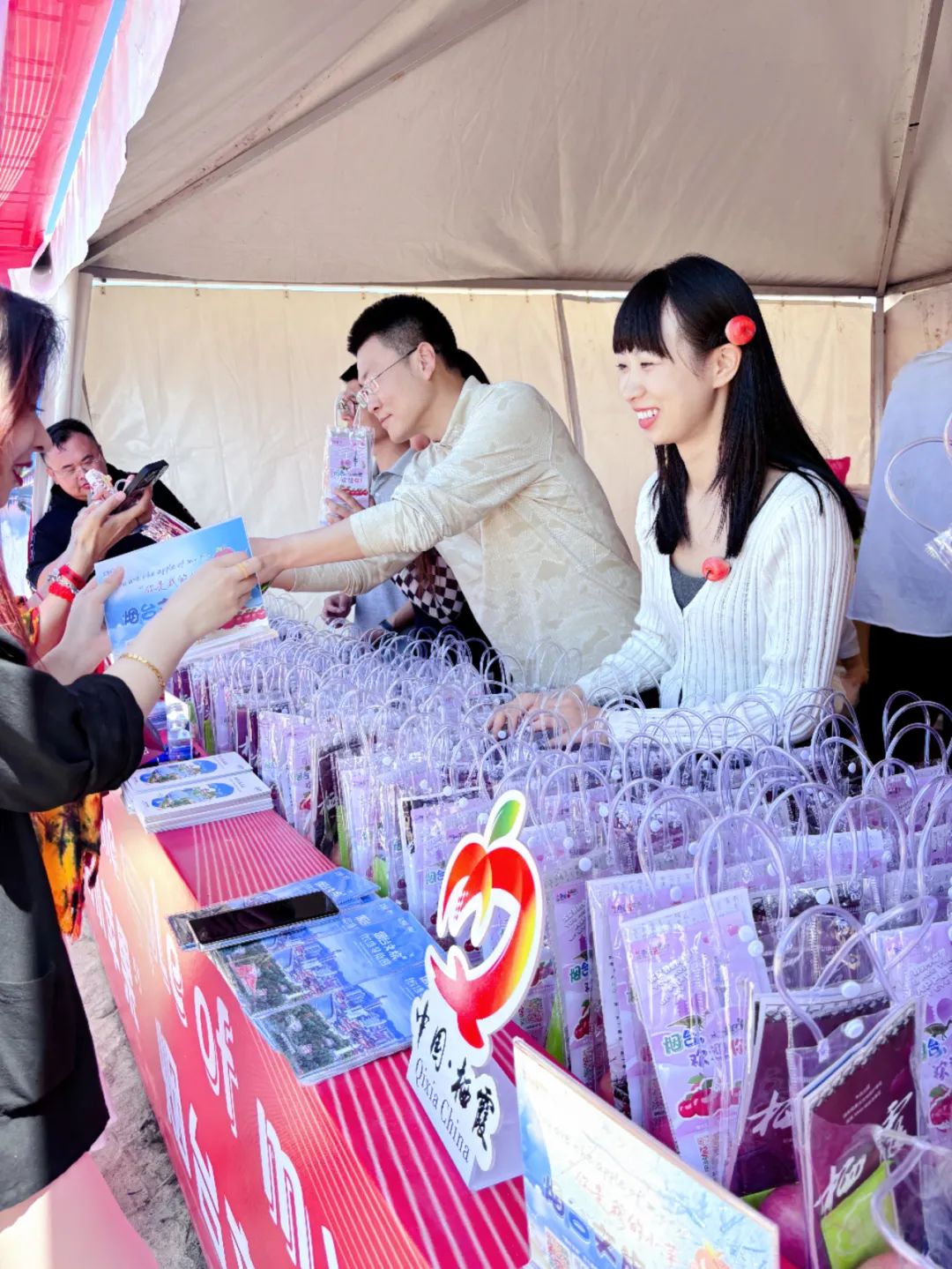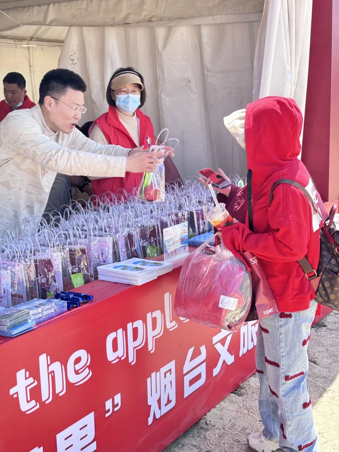活动期间,烟台市博士达有机果品专业合作社为游客准备了5000个烟台苹果,邀请大家免费品尝。又大又圆、脆甜多汁的“栖霞产地”苹果很是惹人喜爱,其鲜美的口感引得游客连连称赞。阵阵果香,不仅让游客感受到烟台的淳朴热情,更丰富点缀了他们的旅程。