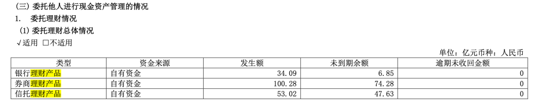 根据2023年度报告,三一重工去年用自有资金购买银行、券商、信托的理财产品,分别购买了34.09亿元、100.28亿元、 53.02亿元,合计187.39亿元。