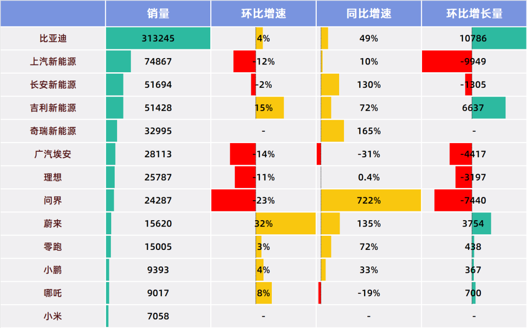 除了比亚迪,没有任何车企可以说是市场位置稳固。