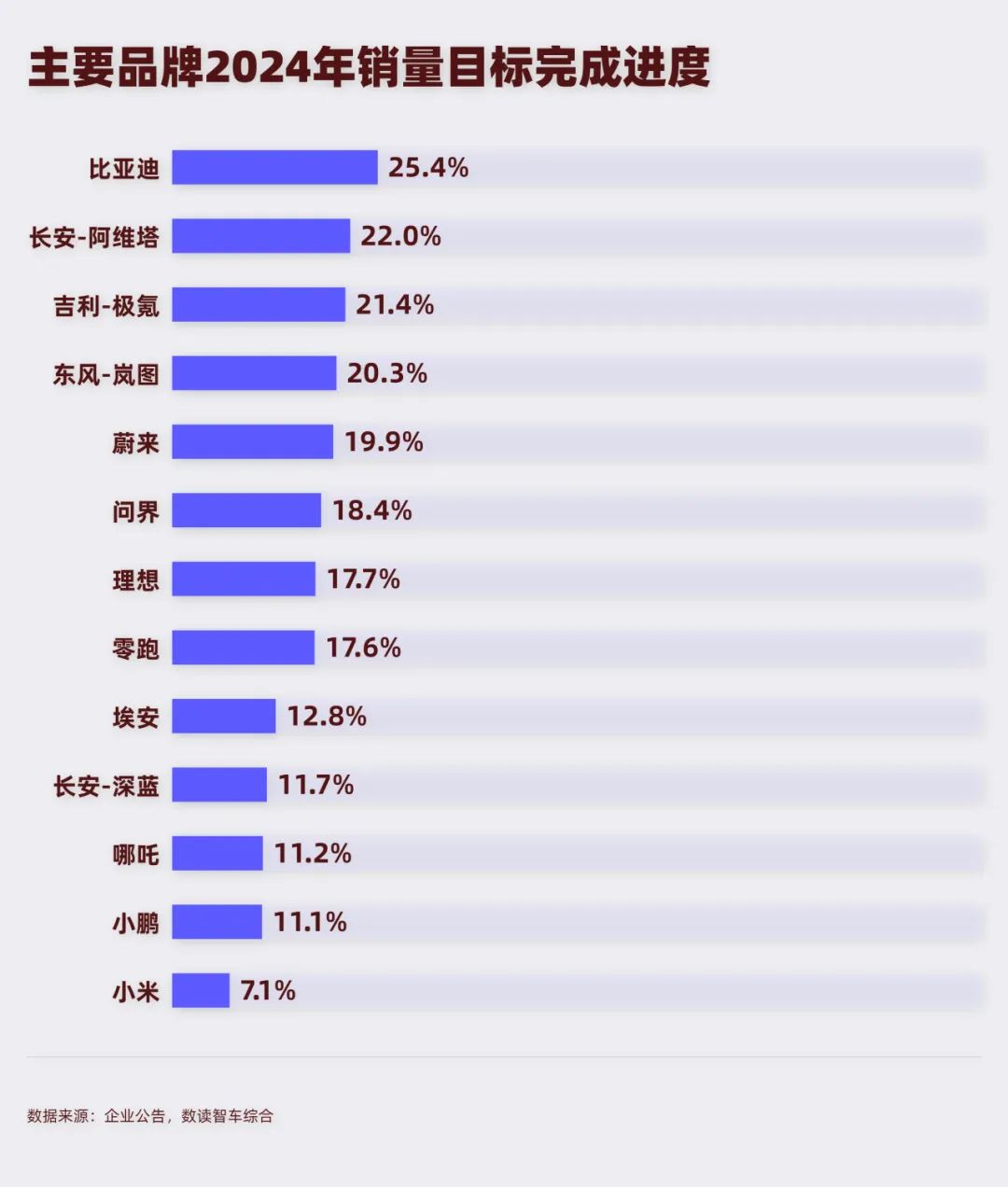 比亚迪在本月再度交出了30万+的销量,是仅次于去年12月的第二高销量成绩,其目标进度已经达到25.4%;吉利极氪的销量完成了21.4%。此外,由于设定的目标较为合理,东风岚图和长安深蓝虽然销量较低,但进度也都超过20%。