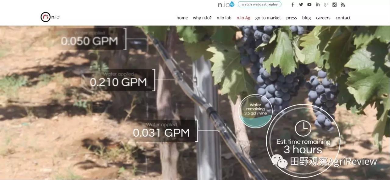 n.io是一个物联网软件和自动化平台,n.io在各行各业都可以应用,农业是其目前重要的一个应用。各种农业物联网感应装置把相应的探测数据输入到n.io,然后n.io去分析这些数据,为农户提供灌溉管理解决方案。n.io还可以告诉农户什么时候农作物可以采摘。在n.io的官网(https://n.io/ag/)有个很有趣的视频,直观的展示了n.io是如何服务的。
