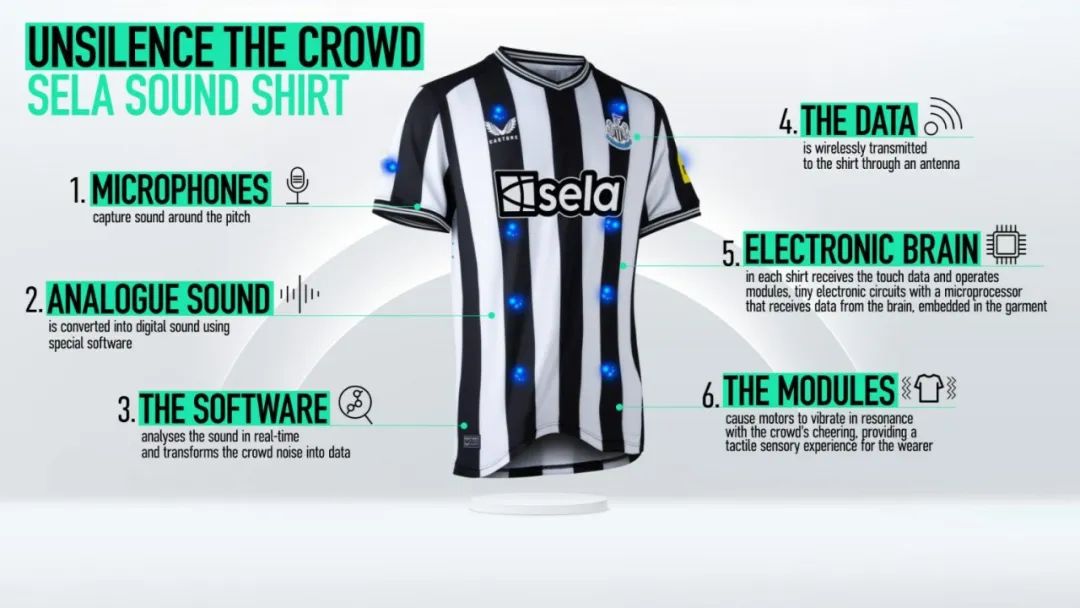 而就在近日,纽卡斯尔联球衣赞助商Sela推出了一款「触感球衣」,给听障人群的世界增加一份色彩,让足球比赛变得更加有意义。