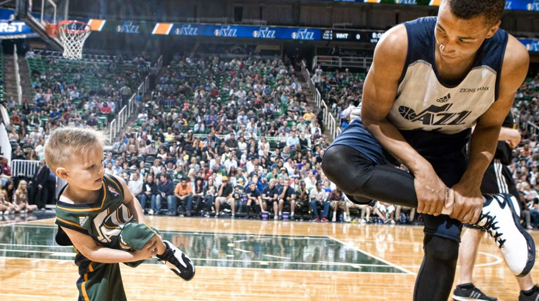 放眼篮坛亦是如此。2014年,NBA爵士队也为诊断出患有急性淋巴白血病的小球迷JP吉布森组织了一场试训,并与他签订了1天的合同。在爵士队的季前赛上,球员们抱起他完成了扣篮。