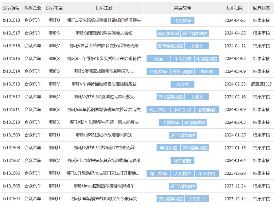 比如品控方面。浏览车质网,哪吒汽车整体投诉量真心不算多,可涉及的质疑点主要指向质量服务方面,包括电瓶故障、刹车失灵、转向机故障、售后态度差等。