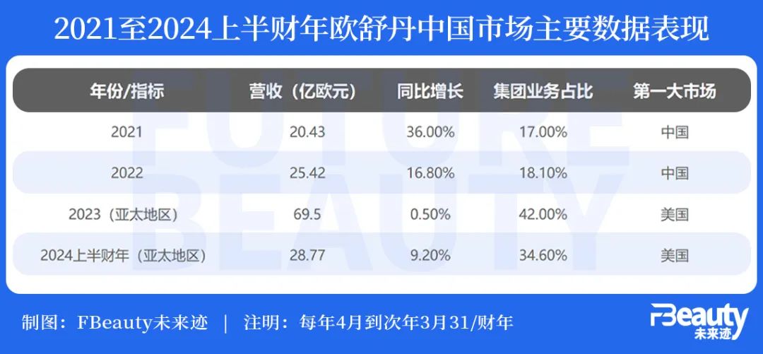 2021财年欧舒丹在大中华区销售额实现4.06亿欧元(约合人民币31.90亿元),中国内地销售额在集团业务中占比为17.0%,中国首次一跃成为欧舒丹全球第一大市场。