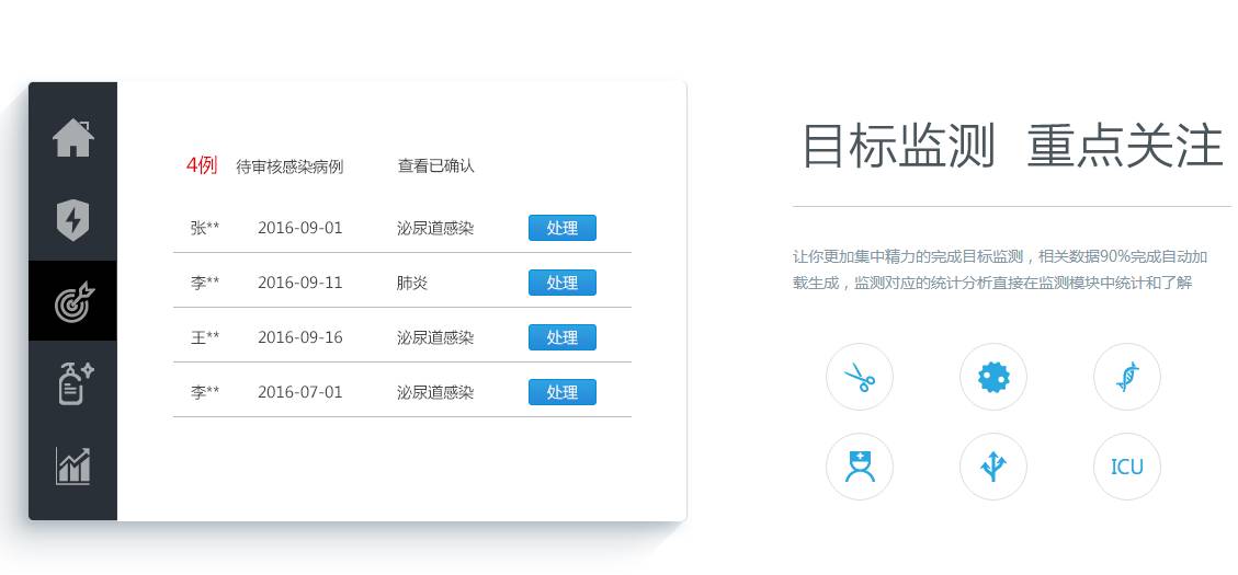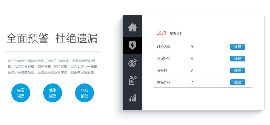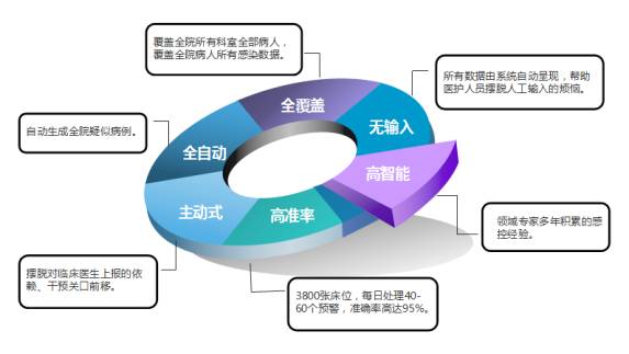 全覆盖:覆盖全院所有科室全部病人,覆盖全院病人所有感染数据。