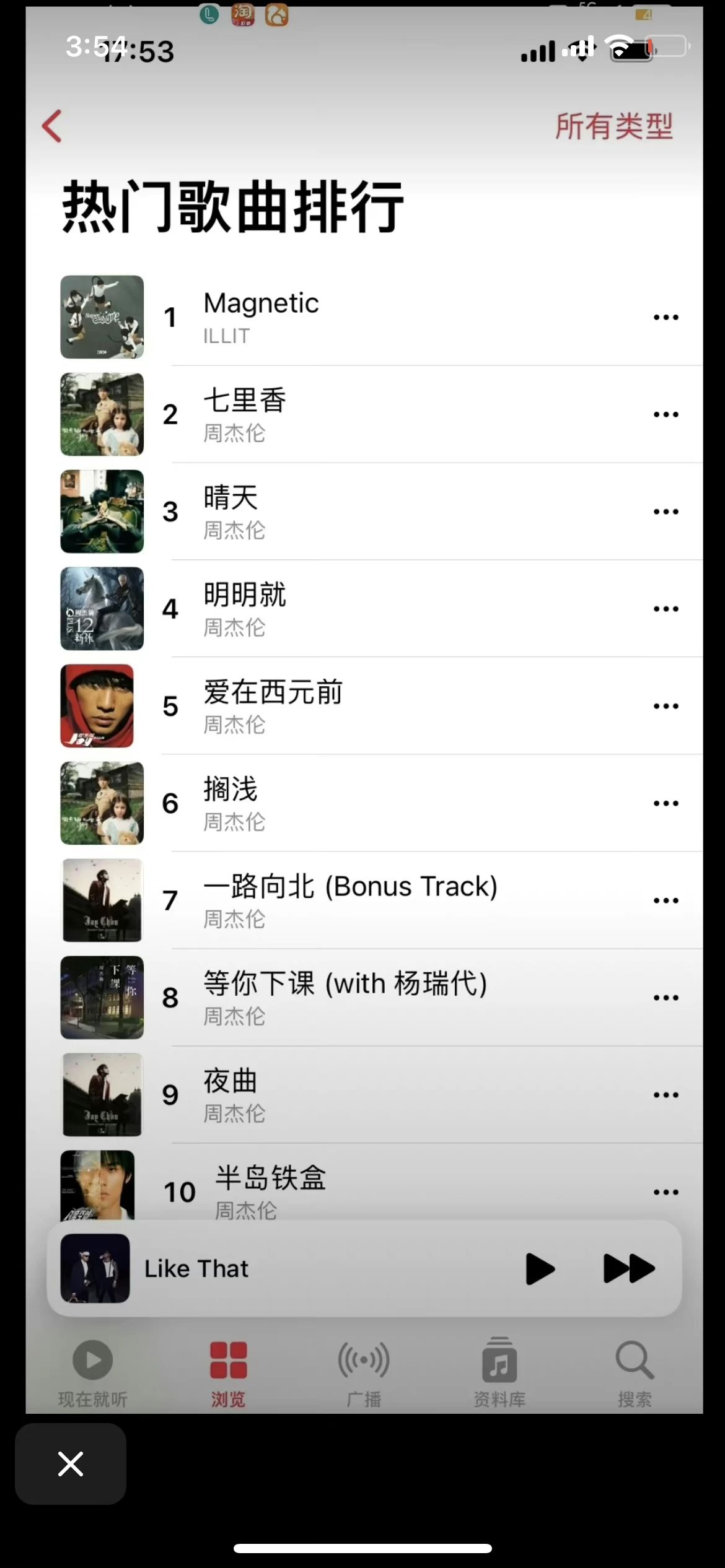 AppleMusic各国收听也都有“注水”嫌疑,以中国大陆为例,AppleMusic排上榜上,ILLIT已经超越周杰伦成为榜单第一,被网友调侃为“水鬼”。