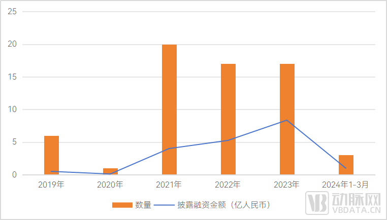 图表 7 生物再生材料企业近五年融资情况,数据来源:动脉橙产业智库,蛋壳研究院制图