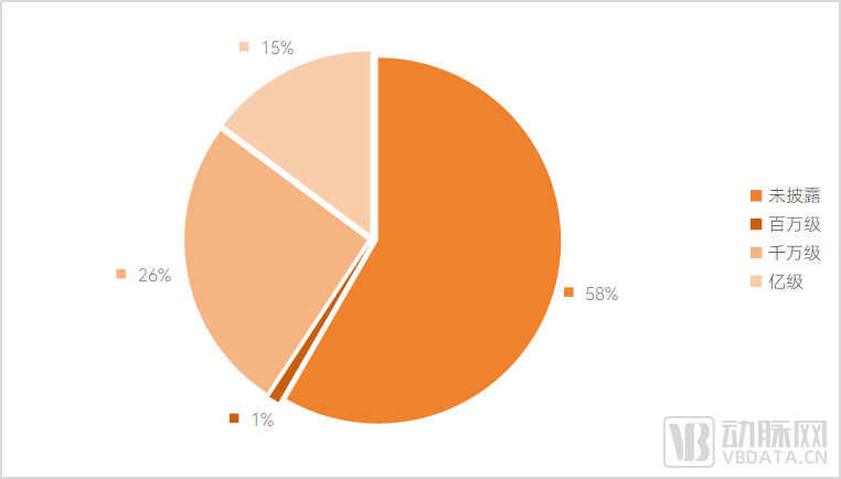 从融资金额看,千万级人民币的融资占据了超过26%的比重,而亿级人民币的融资则占据了15%的份额。
