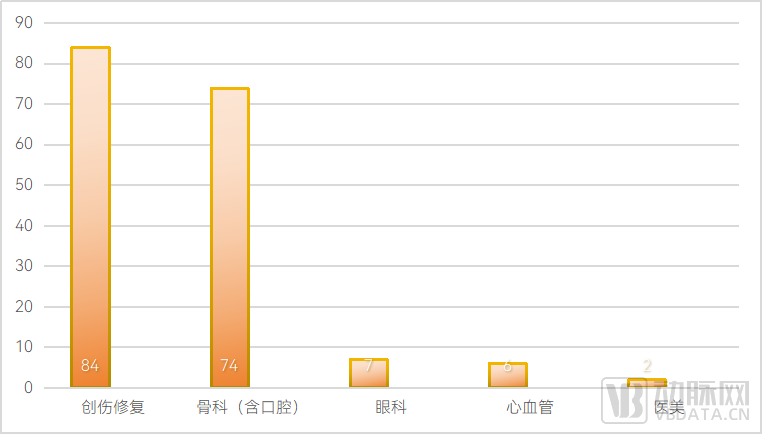 获得NMPA批准的生物再生材料疾病领域分布,数据来源:NMPA,蛋壳研究院制图