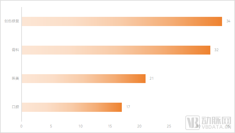 从疾病领域观察,生物再生材料企业在研产品的布局主要集中于创伤修复、骨科、医美和口腔领域。根据蛋壳研究院统计,在研企业中,创伤修复领域有34家在研,骨科领域有32家,口腔领域有17家。