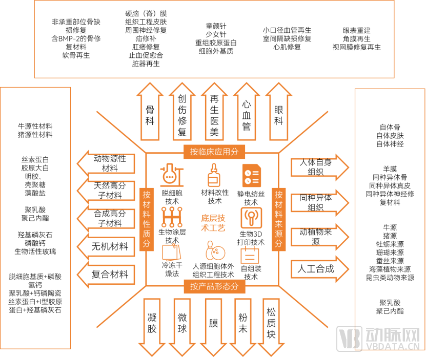 生物再生材料版图,数据来源:动脉橙产业智库,蛋壳研究院制图