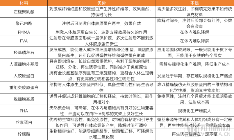 可以看出,目前再生医美领域的布局高度聚焦“童颜针”,但其仍存在短板,需要不断研发新型材料来加以改进。