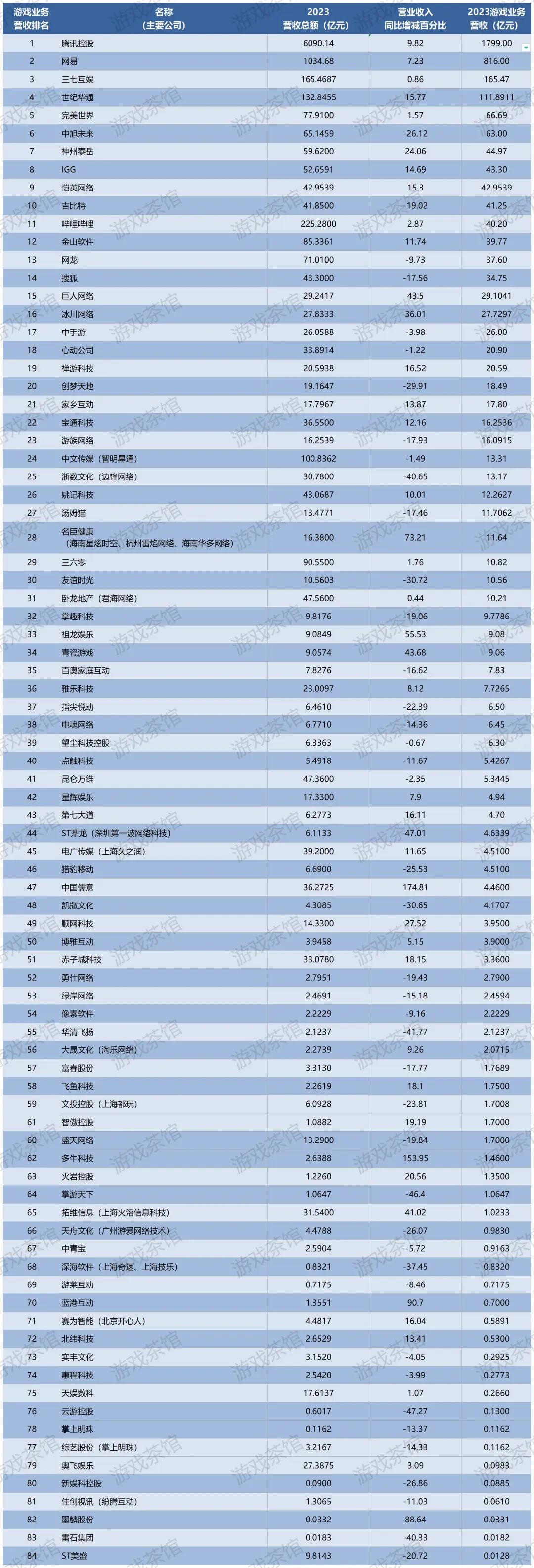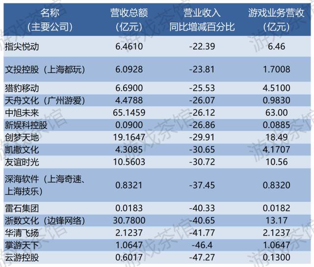 需要指出的是,此次统计榜单并未包含:无游戏研运业务的公司(如,紫天科技于在线游戏广告业务),未上市的游戏公司(如,米哈游),及未披露游戏收入的公司(如,快手)。