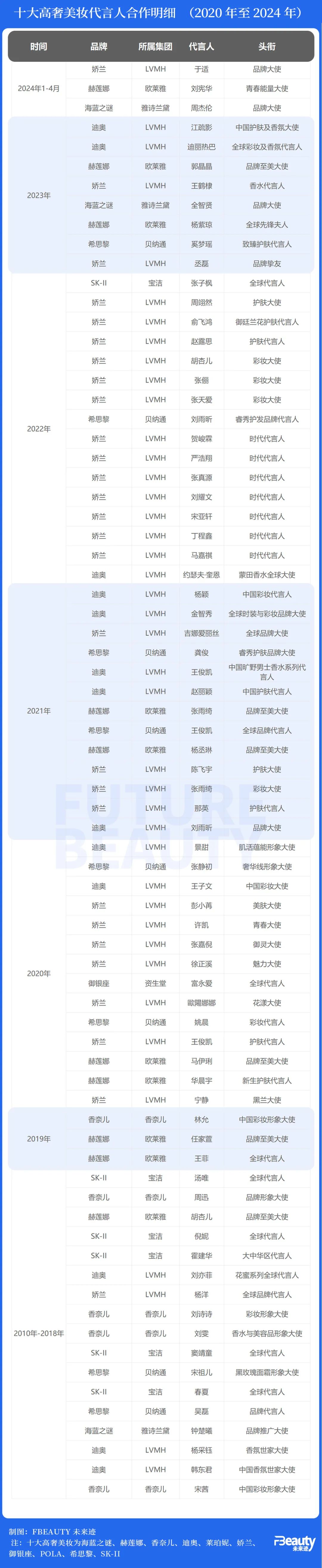 通过梳理海蓝之谜、赫莲娜、希思黎、香奈儿、迪奥等十大高奢美妆品牌发现,高奢美妆品牌与明星代言人的结合,曾一度成为市场营销的热门策略。
