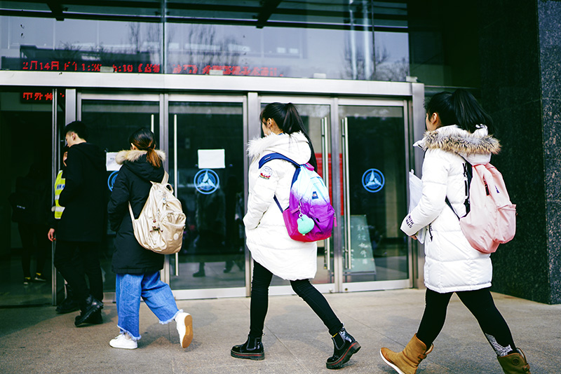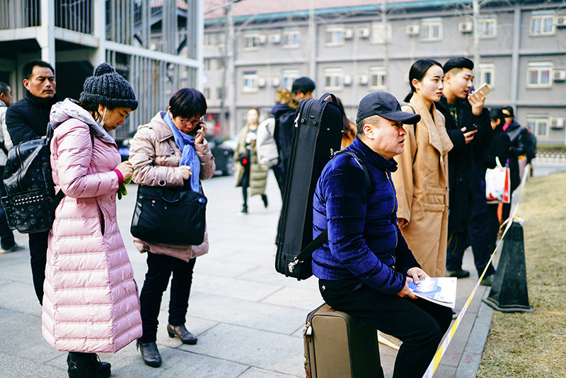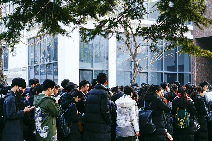 2月14日是西方的情人节。这个日子正好是2017年中国传媒大学艺术类招生考试的时段。北京的冬天总是特别长,虽已立春,仍乍暖还寒。从全国各地来参加艺考的考生们穿着厚厚的棉服,聚集在传媒大学标志性的新建筑——北院白色的48号楼前待考。他们有的背着装备齐全的画夹,有的在思考,有的临阵“磨最后一枪”——还在看教材,有的在看手机打电话,有的拿着准考证袋在凝神。一旦踏入这个白色的48号楼,几小时之后,揣着艺术梦想的花季雨季少年们的人生,日后将随着这短短时间内的表现而出现重大转折。不管是成是败,这是他们人生的必经之路,