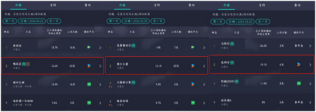 尤其《花间令》《惜花芷》主演并非扛剧大流量,制作也不及S+剧集,还是交出了一份相对惊喜的“黑马”答卷。