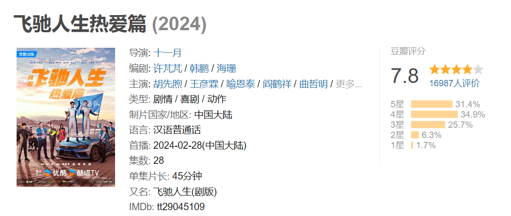 “少年幻想宇宙”便是集中打好“青春热血”牌,已播出的《飞驰人生热爱篇》(7.8分)、待播的《凡人修仙传》《少年白马醉春风》《镇魂街2》《我叫赵甲第2》阵列清晰,受众集中。
