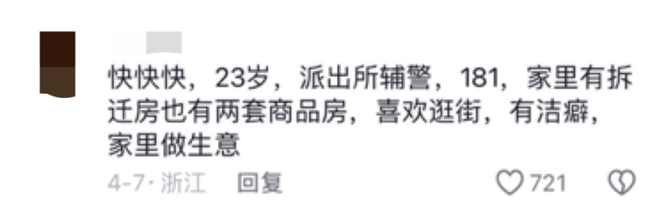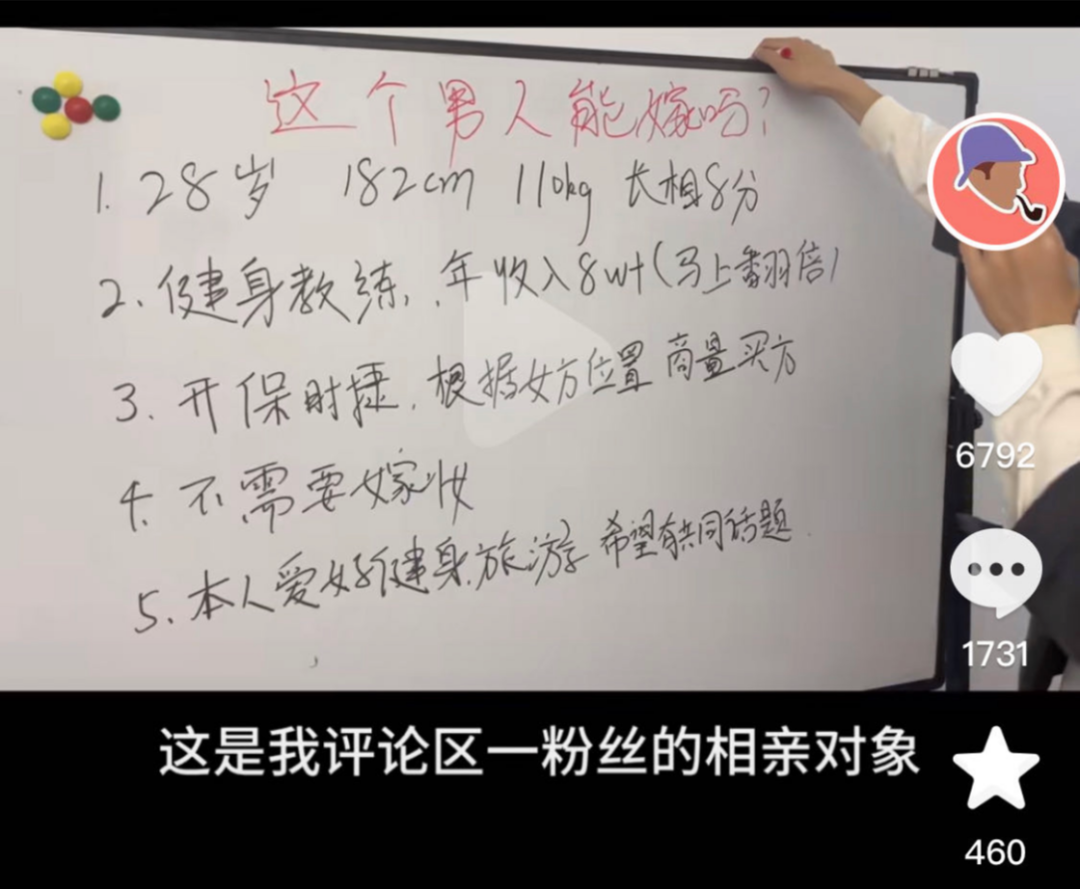 在他的视频评论区,已经有不少人迫不及待地列出相亲对象的条件,蹲一个解析。