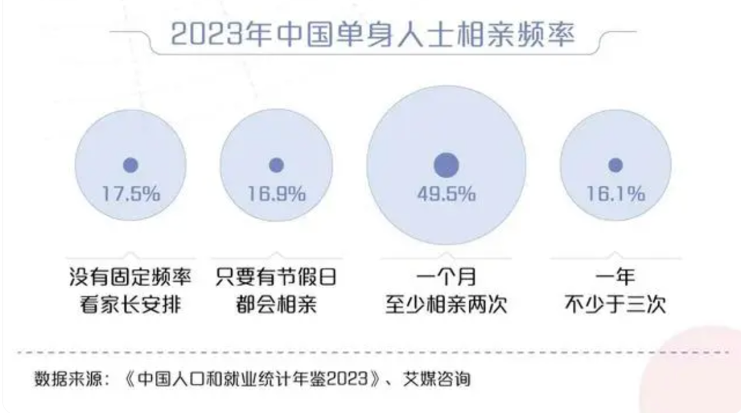 艾媒咨询数据显示,超过八成的单身群体都会相亲。差不多有1/2的人一个月至少相亲两次。