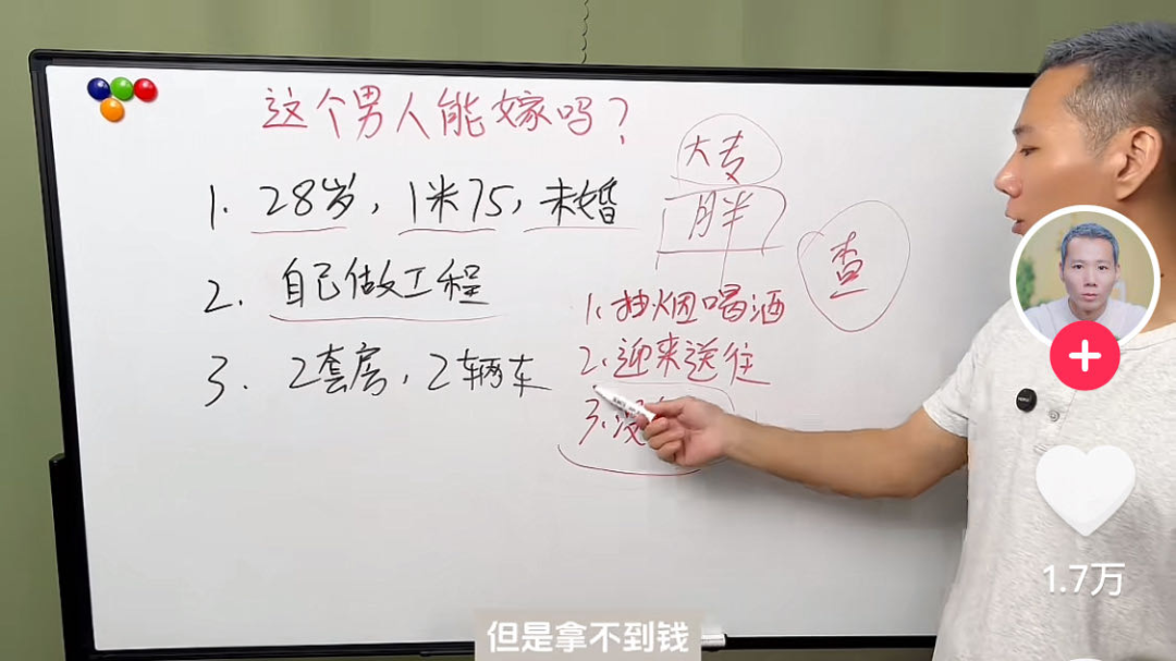 也有博主专门给男同胞出招,每条视频都在认真探讨“这个女生能娶吗?”