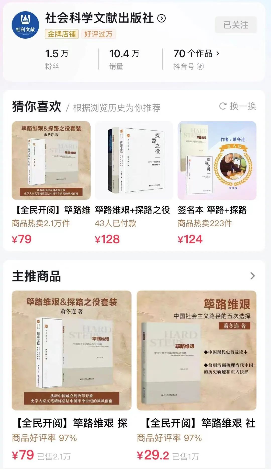 就是在翻找旧书过程中,社科文献发现了《筚路维艰》一书,联动了抖音图书带货达人吴主任一起带货,做出了超预期的成绩。