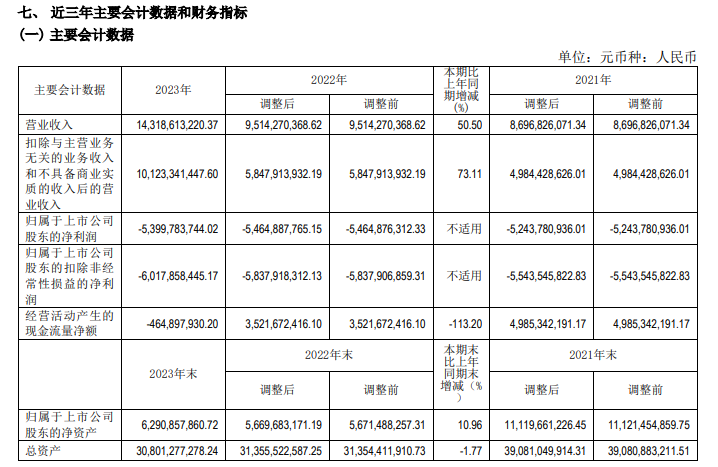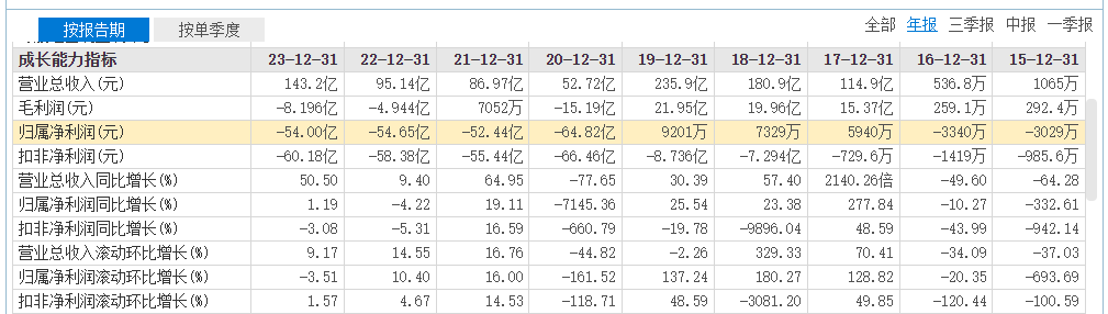 如今年报发布,归属净利润亏损约54亿元,同比增长1.19%;扣非净利润亏损60.18亿元,同比下降3.08%。
