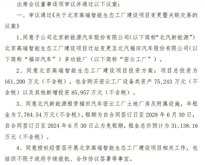 北汽蓝谷2023年8月14日晚间公告,北汽蓝谷子公司北京新能源汽车股份有限公司(下文简称“北汽新能源”)北京高端智能生态工厂建设项目,迁址变更至北汽福田汽车股份有限公司(下文简称“福田汽车”)多功能厂(下文简称“密云工厂”)。