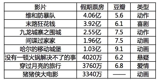 而另一部低于预期的则是假期中唯一爱情片《穿过月亮的旅行》,其实影片在档期中属于品质不错的,豆瓣达到了6.8分,在5部国产电影位列第二,6.8分已经是近年来高口碑的国产爱情片了,在当今爱情片普遍6分的环境中,《穿过月亮的旅行》已经有了一定的提升。