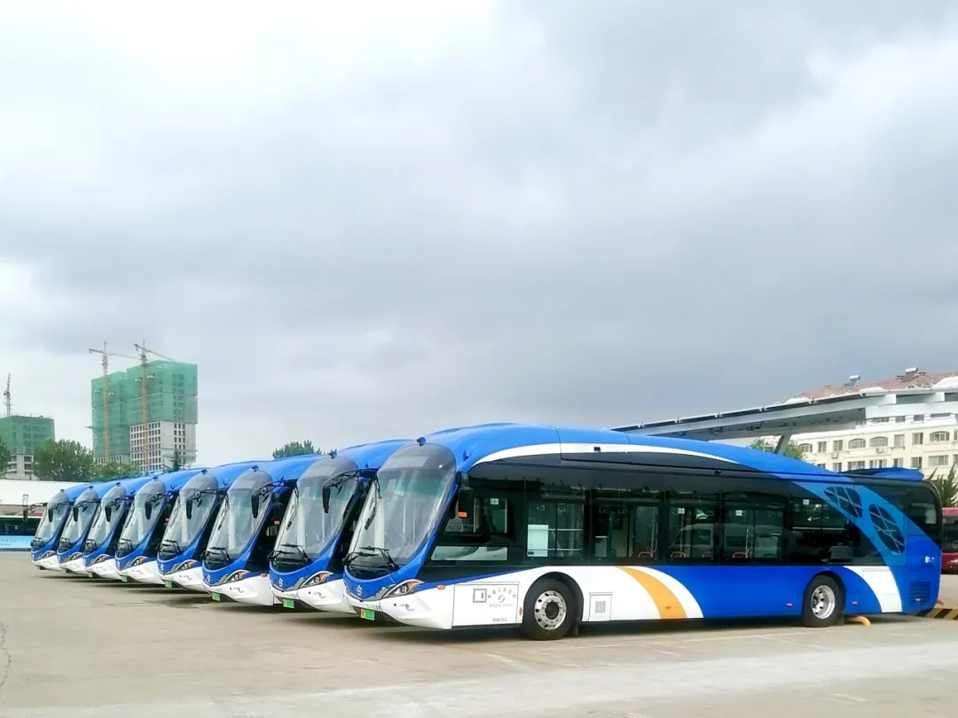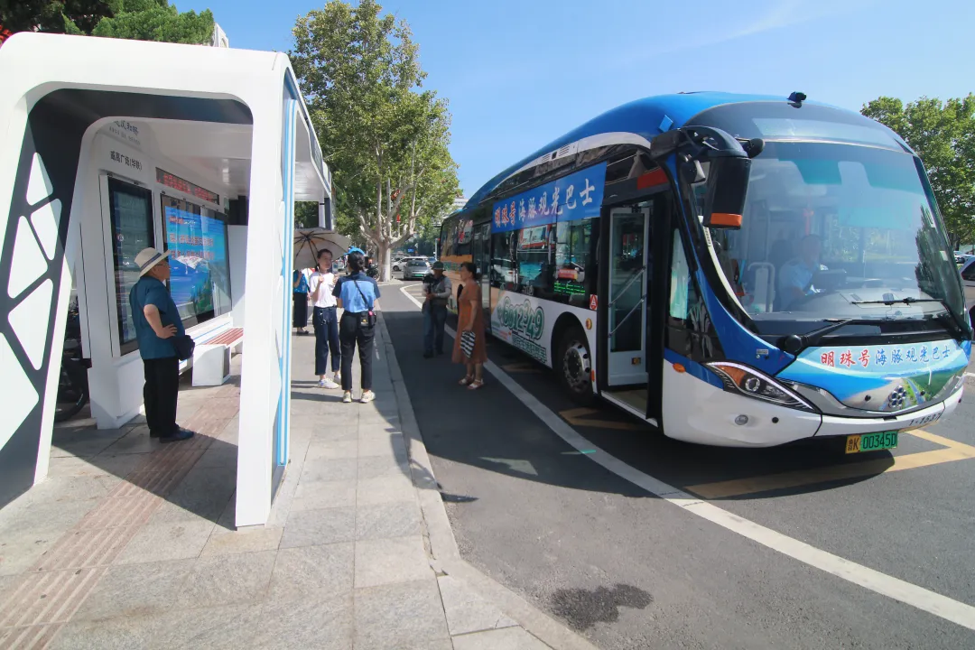 格力钛新能源海豚公交,就像从海面跃起的海豚,一抹蓝穿梭在威海明媚的阳光里。