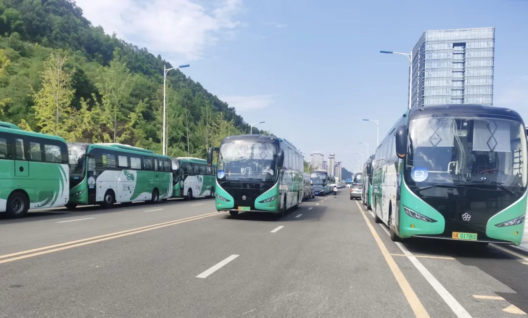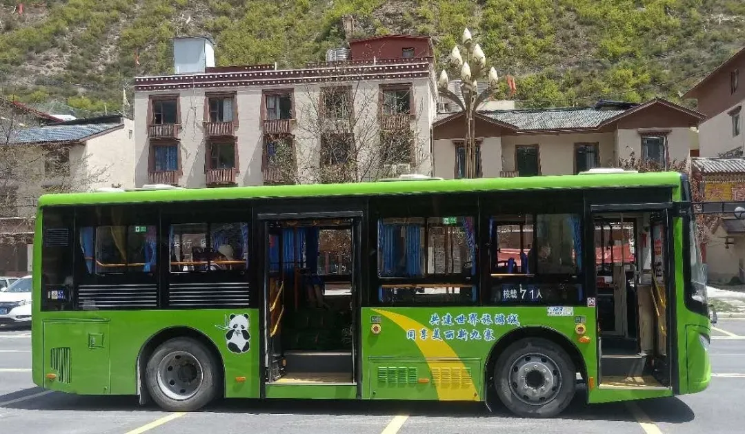 一身绿衣的格力钛新能源经典公交,缓缓行驶在九寨沟的浪漫风光中,静静听鲜花绽放的声音,是一幅人与自然相互融合的细腻画卷。
