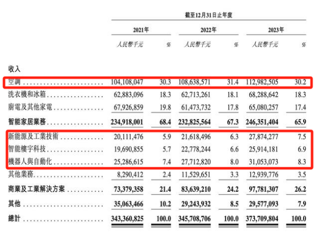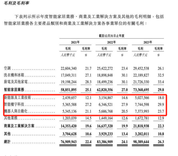 具体来看,美的B端业务分为新能源及工业技术、智能楼宇科技、机器人与自动化以及其他业务这几大版块。招股书显示,2023年,这三业务收入增速超两位数,毛利率则依次为18%,29.9%,23.7%,盈利能力尚佳。