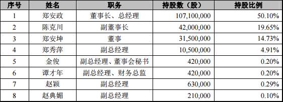 野马财经(公号ID:YMCJ8686)查阅其招股书注意到,安正时尚董事长郑安正是公司的创始人之一,且一直为公司股东。2010年8月25日,通过股份受让方式,郑安正持股数变更为2550万股,占公司股份总数的51.00%,成为公司第一大股东。本次发行郑安正持有公司10710万股股份,占公司总股本的37.57%。按照安正时尚今日24.16元/股的收盘价来计算,郑安正的身价已达25.8亿元。