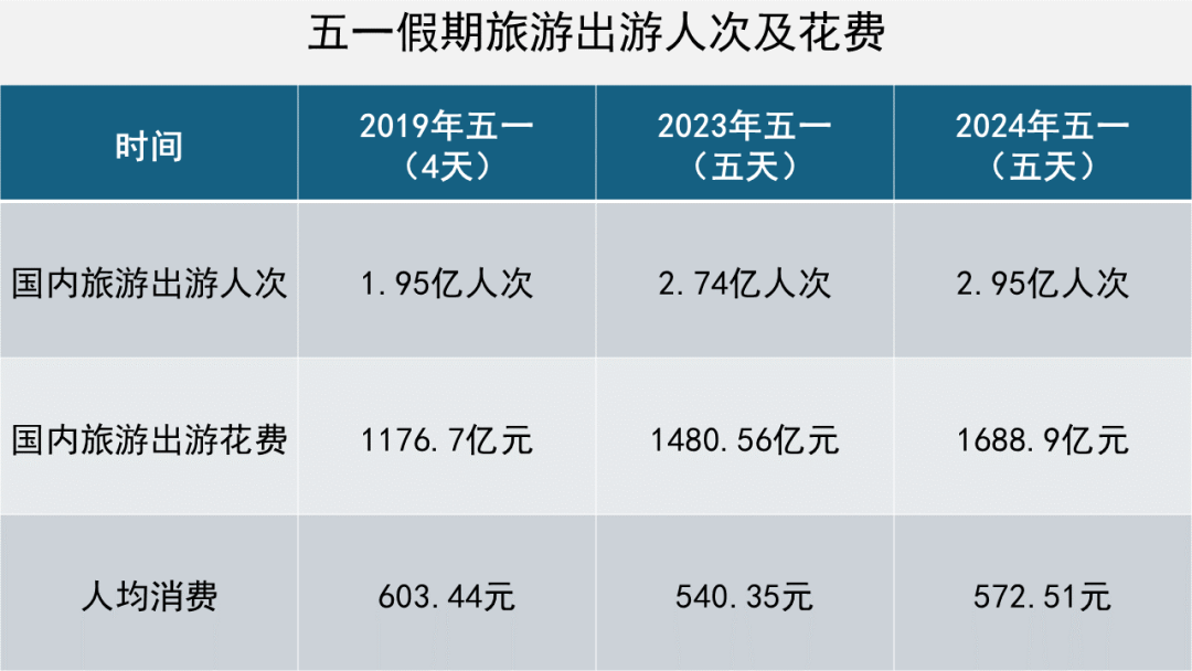 今年五一的国内游人均消费为572.51元,虽高于2023年的540.35元,但未能达到2020年前的603.44元水平。