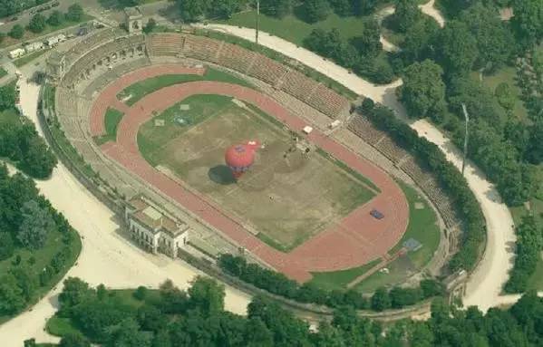 今天改为田径场的Arena Civica。由于原始设计的观众席尺寸远大于现代田径场的需求,可以从图中看到其怪异的外侧跑道布局,像一个阿拉伯数字6