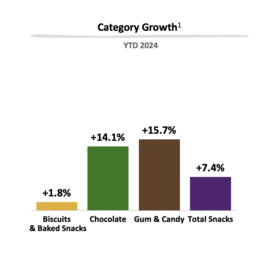 “虽然今年迄今,许多食品和饮料品类都表现出疲软状态,但对比更广泛的食品领域,我们的核心品类巧克力、烘焙零食和饼干有着更强的韧性和更小的需求波动。”冯朴德说。